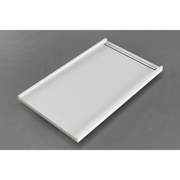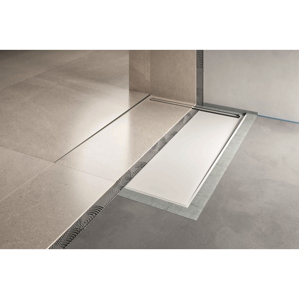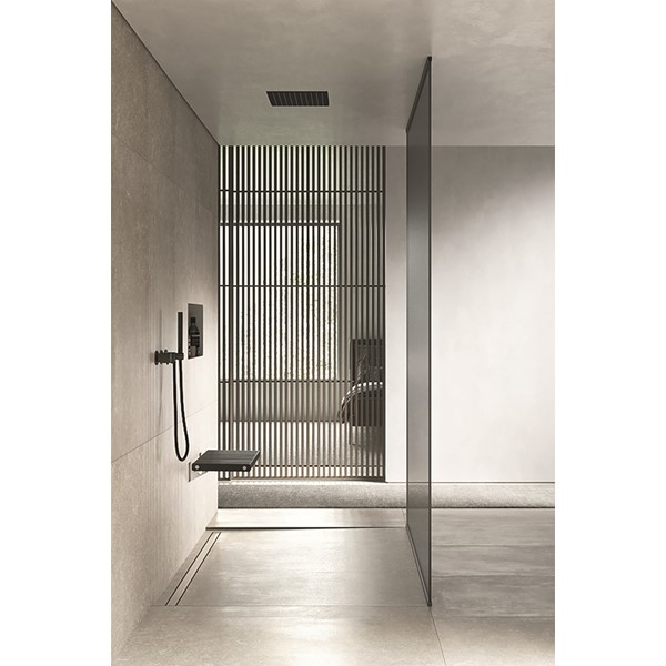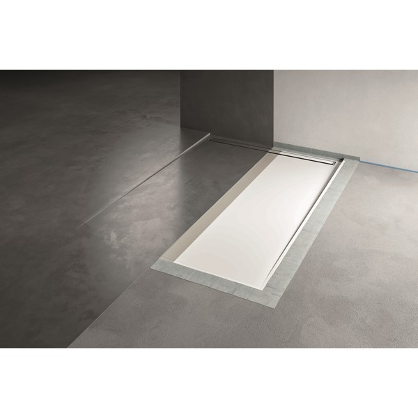 Unico is an unclad shower tray with linear waste in stainless steel.