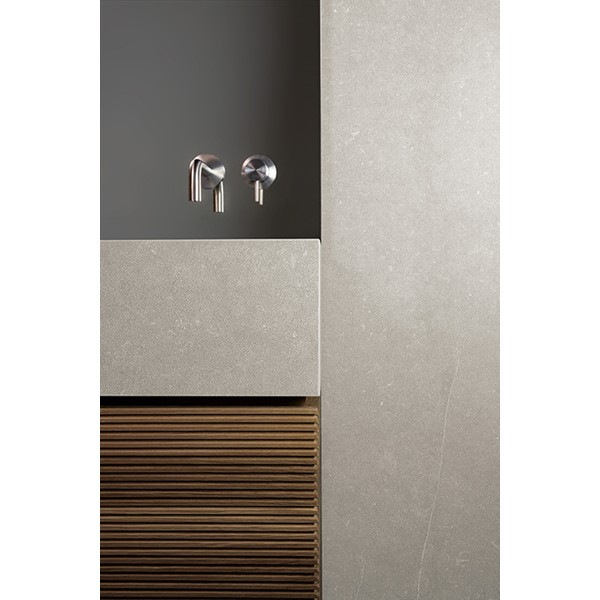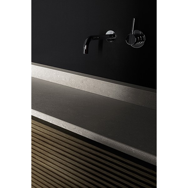 L.28 encapsulates the very essence of Livingceramics, thanks to the elegance of its simple uniform design. The collection’s carefully balanced use of shape gives it a light-weighted minimalist air. The units come in three standard lengths–240 cm, 120 cm and 90 cm–to suit varying needs. The largest unit features a central section where small decorative objects or every-day items can be stored. The other models share its same design and appearance, with symmetrical countertops that seek to ensure an overall balance.