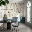 Nature’s beauty is transferred to a marble-effect material featuring surfaces streaked with an unmistakable rusty hues in intense and varying shades. With its bold tones, this option accents kitchen tables, and worktops when paired with pale, natural woods, for a harmonious look in which the uncompromising elegance of porcelain stoneware stands out for its exceptional strength and perfection of detail.