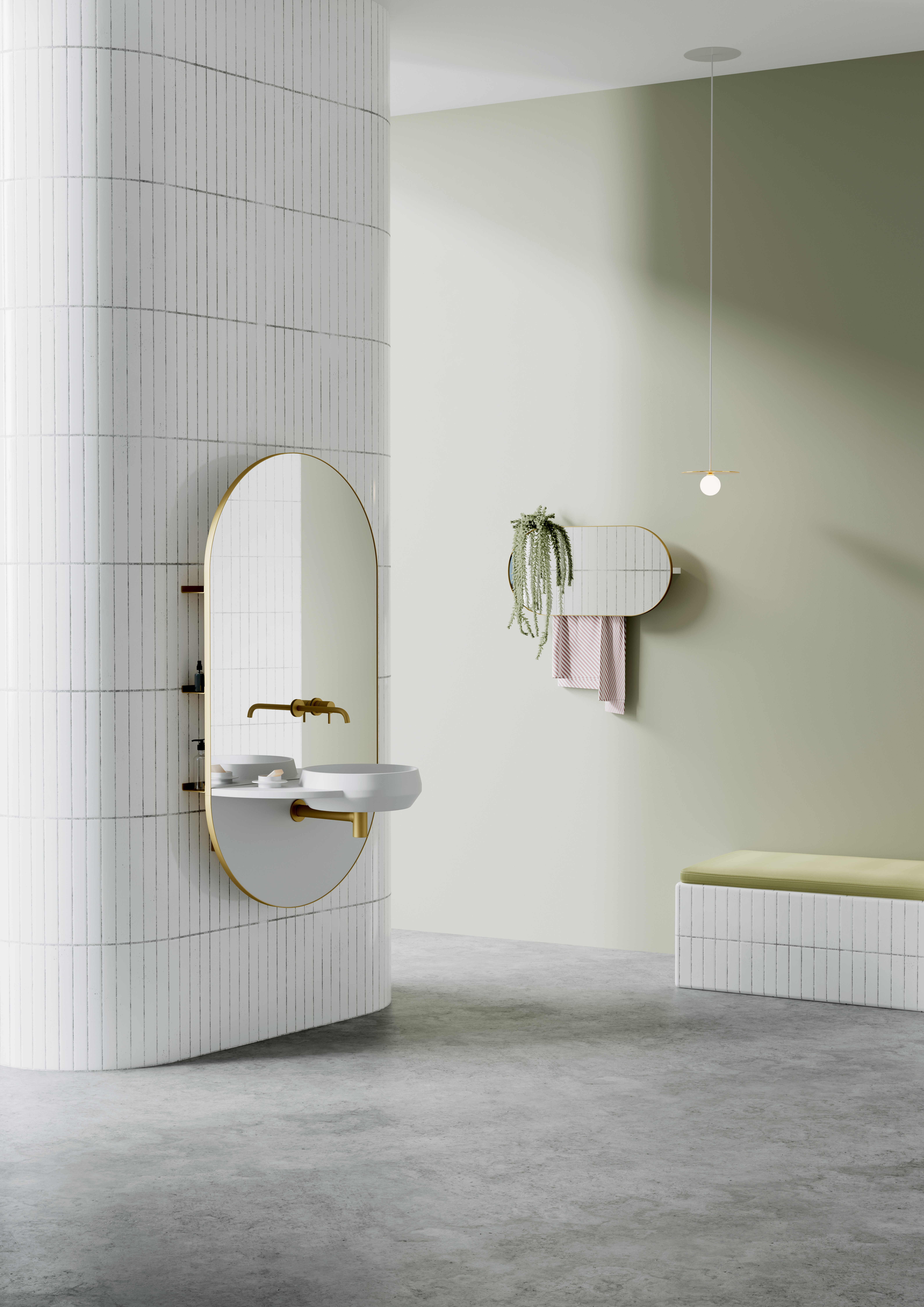 Λειτουργική ευελιξία και μείγμα υλικών , αυτά είναι τα στοιχεία που παρουσιάζονται στο Arco, ένα πολυλειτουργικό προϊόν που σχεδιάστηκε από τον MUT. Σχεδιασμένο ως έπιπλο μπάνιου με ενσωματωμένο καθρέφτη και ράφια κρυμμένα πίσω από τον καθρέφτη το Arco μπορεί να μετατραπεί σε μια κομψή κονσόλα για το σπίτι.
