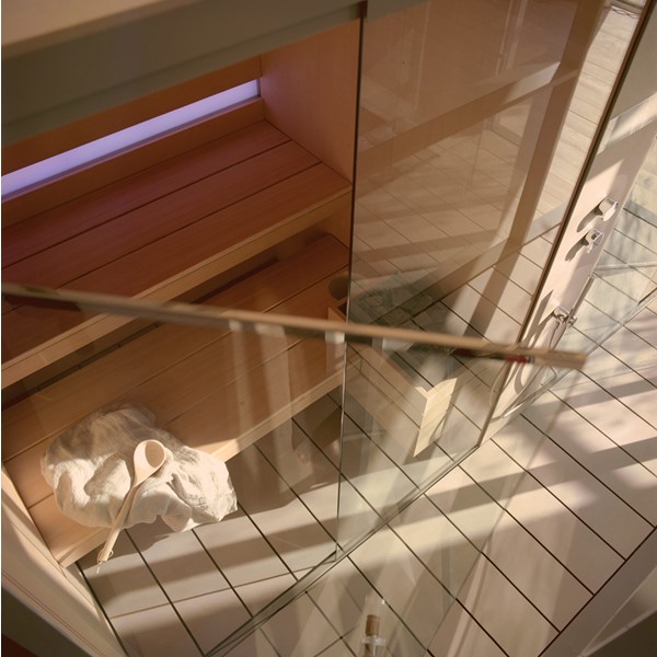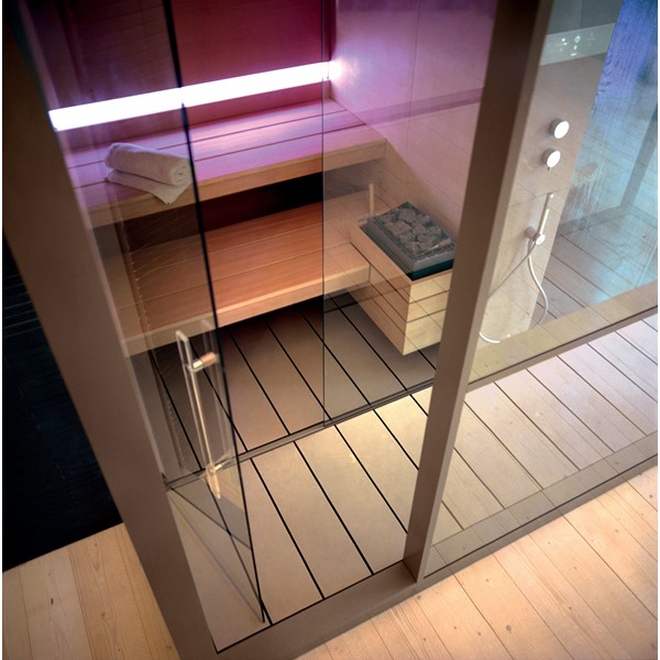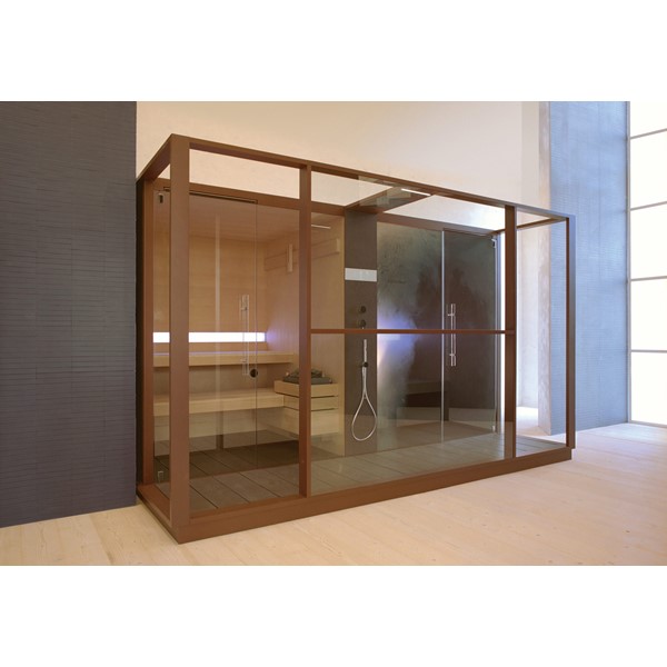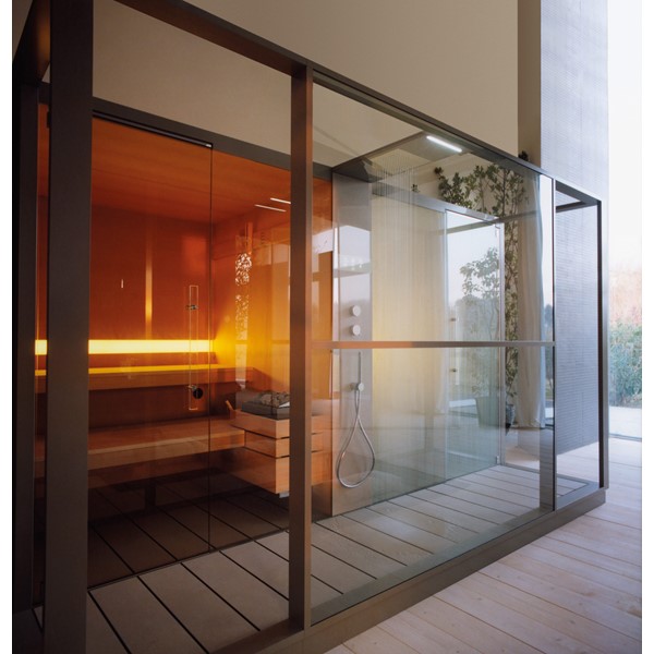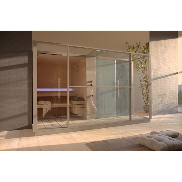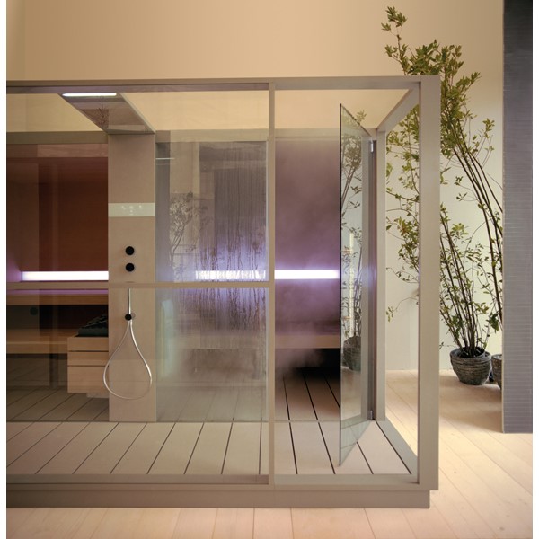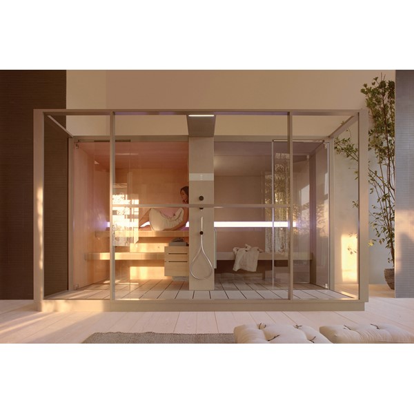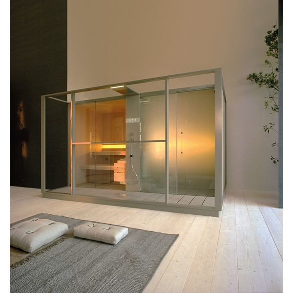 Σάουνα και χαμάμ σε ένα που συνδέονται με ένα κομψό ντους. Διαθέτει όλες τις λειτουργίες ενός πλήρους spa, την τέλεια ισορροπία της πρακτικότητας, της αισθητικής και της τεχνολογίας.