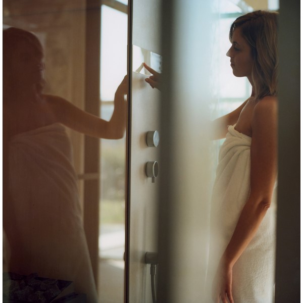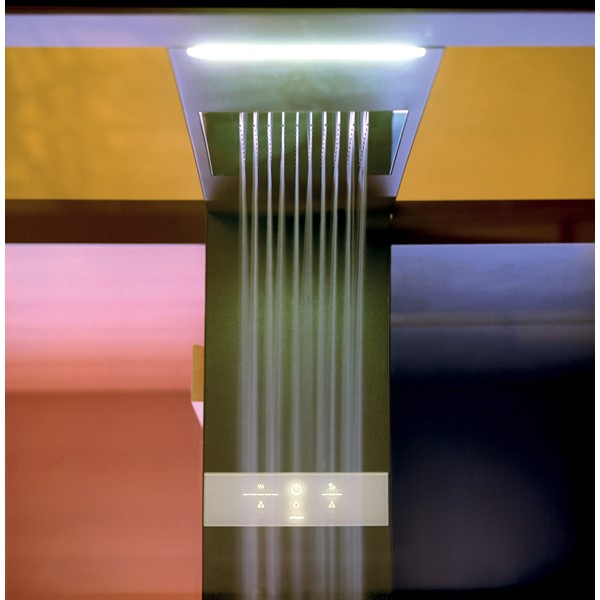 Πλήκτρα αφής: μια κεντρική στήλη περιέχει τα φωτιστικά οθόνης με φωτισμό στο πίσω μέρος για τη σάουνα, το χαμάμ και τη θεραπεία χρωμάτων.