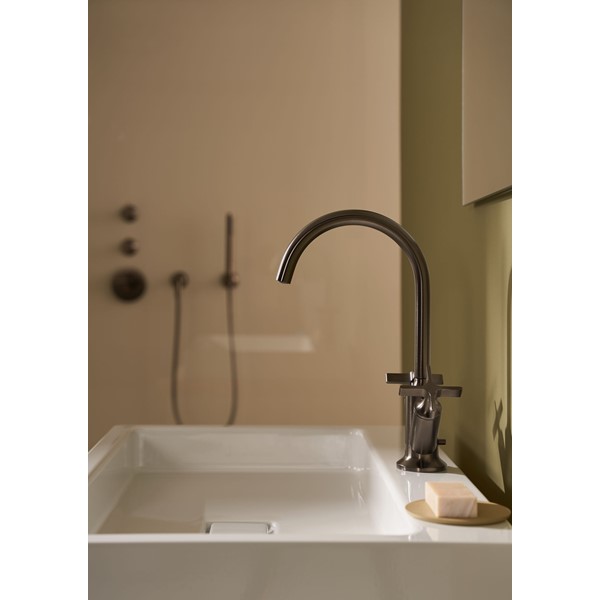 Συνδυάζουν γεωμετρικά σχήματα και απαλά περιγράμματα. Οι ροζέτες είναι κωνικές δημιουργώντας μια ιδιαίτερα ομαλή μετάβαση στο νιπτήρα.