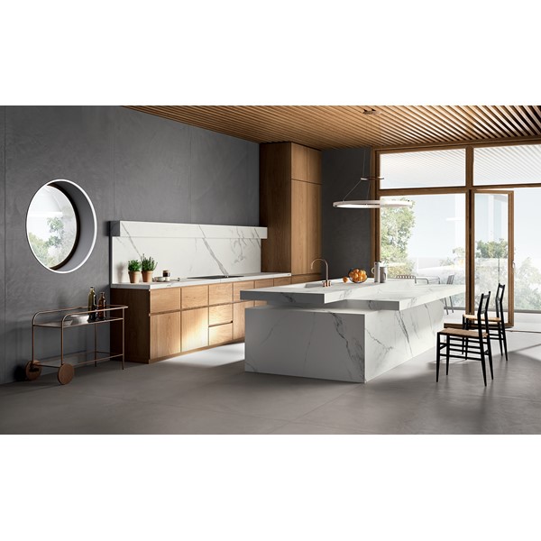 Η ομορφιά της φύσης μεταφέρεται σε ένα υλικό με μαρμάρινο εφέ που χαρακτηρίζεται από επιφάνειες χαραγμένες με ξεχωριστές σκουριασμένες έντονες και ποικίλες αποχρώσεις. Με τους τολμηρούς τόνους, η επιλογή αυτή δίνει έμφαση στους πάγκους κουζίνας όταν συνδυάζονται με ανοιχτό φυσικό ξύλο για μια αρμονική εμφάνιση στην οποία η ασυμβίβαστη κομψότητα των πορσελάνινων υλικών ξεχωρίζει για την εξαιρετική της δύναμη και την τελειότητα της λεπτομέρειας.