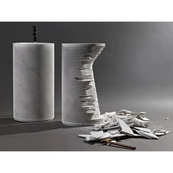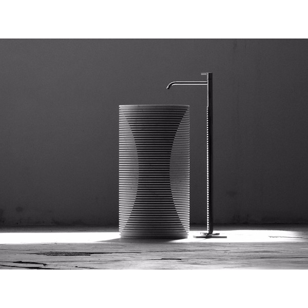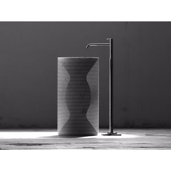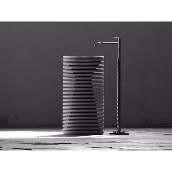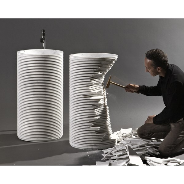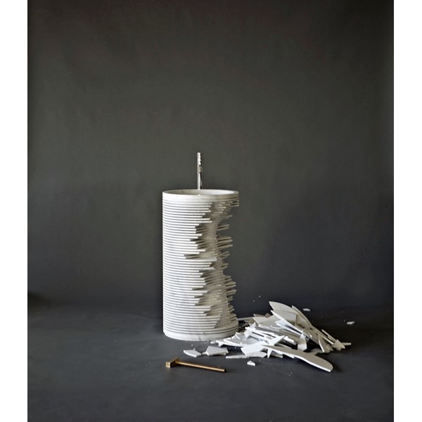 Η ιδέα αυτού του νιπτήρα γεννιέται με την παρατήρηση της επεξεργασίας των τυφλών μαρμάρινων γλυπτών, στα οποία το τρισδιάστατο σχήμα του γλυπτού περιγράφεται σε βήματα και διάφορα βάθη ενός δίσκου διαμαντιών που διευθύνεται από μια αριθμητική μηχανή ελέγχου. Ο εσωτερικός πυρήνας του έργου είναι η ιδέα που συνοδεύει από την αρχή το έργο του Paolo Ulian για τον Αntoniolupi. Το μαρμάρινο μπλοκ χάνει τη μονολιθική του εμφάνιση και μετατρέπεται σε κάτι αιθέριο, διαφανές, που περικλείει ένα μυστικό πυρήνα. Μια ψυχή που μπορεί να παραμείνει κρυμμένη, αποκαλύπτοντας το λεπτό παιχνίδι του φωτός, ή μπορεί να αποκαλυφθεί αργά με το σπάσιμο των άκρων των λεπίδων. Όταν το μπλοκ είναι κενό, οι λεπτές μαρμάρινες σχάρες, οι οποίες σχηματίζονται με κοπή, σπάνε με σφυρί έτσι ώστε να βγάλει το ωμό γλυπτό που έχει σχηματιστεί στο εσωτερικό του. Η ίδια διαδικασία χρησιμοποιείται για να πραγματοποιήσει το νιπτήρα Introverso από ένα ενιαίο λευκό μαρμάρινο μπλοκ Carrara. Εδώ τα κενά μεταξύ των κομματιών υπαινίσσονται έναν άλλο εσωτερικό πυρήνα που μπορείτε να αποφασίσετε να αφήσετε ή να ανασηκώσετε σπάζοντας ένα μέρος ή όλες τις λεπίδες με ένα σφυρί. Στην τελευταία περίπτωση το νέο αναδυόμενο σχήμα θα χαρακτηρίζεται από επιφανειακή διακόσμηση που δημιουργείται με το σπάσιμο του μαρμάρου. Αυτό το μηχάνημα κοπής σε σειρά σας επιτρέπει να πάρετε μια σαφή φυσική και οπτική ανακούφιση του νεροχύτη, το μάρμαρο χάνει την τυπική μονολιθική του μορφή και μετατρέπεται σε κάτι αιθέριο και σχεδόν διαφανές. Με το να πατάτε το δάχτυλό σας ή άλλο κατά μήκος των μαρμάρινων πλακών παράγεται μια απαλή και φυσική μουσική που προέρχεται από την ψυχή της πέτρας και τις ιδιαιτερότητες της δουλειάς του. Μέσα από τον ενθουσιασμό αυτού του νέου έργου συνεχίζεται η αδιάσπαστη πορεία του Αntoniolupi, σε αναζήτηση ομορφιάς και κομψότητας, και ένα σχέδιο που ξεπερνά το χρόνο και το χώρο, λειτουργικό και αρμονικό, πρωτότυπο και συγχρόνως με δική του ξεκάθαρη ταυτότητα.