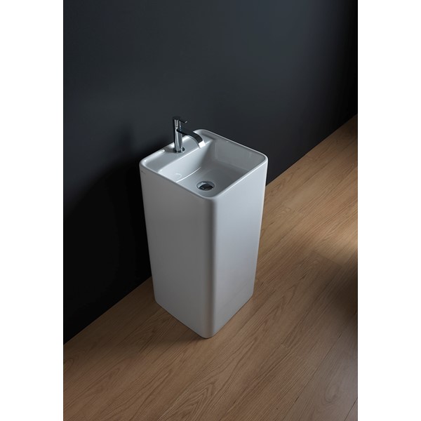 Ο ελεύθερος νιπτήρας προσθέτει την τάξη και την κομψότητα στο μπάνιο, εισάγοντας μια αισθητή αίσθηση αρμονίας στο χώρο.