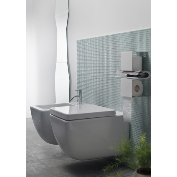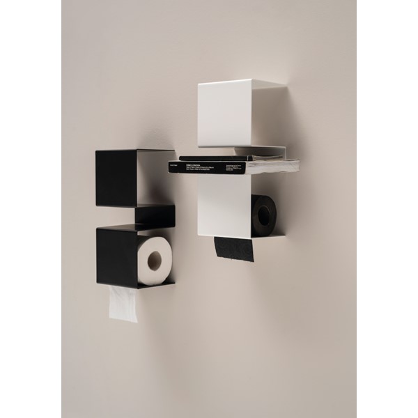 Design toilet paper holder where you can fit flawlessly toiletries and magazines as well. The upper block works as toilet paper storage, whilst your favourite readings can be stacked between the cubic units. InTeam comes in black or white.