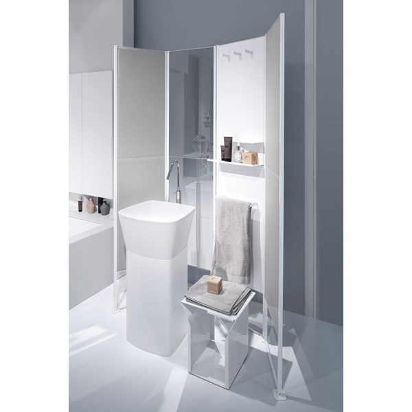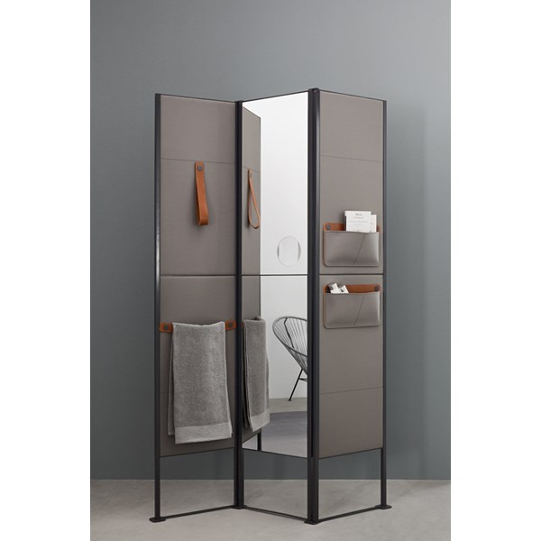 A sensory microcosm consisting of functionality and poetry which conceals and reveals, divides and enchants just line a Byōbu, the Japanese folding screen. Shade is an unprecedented customisable modular folding screen with panels in various colours which can be equipped with accessories, traditional and enlarging mirrors.