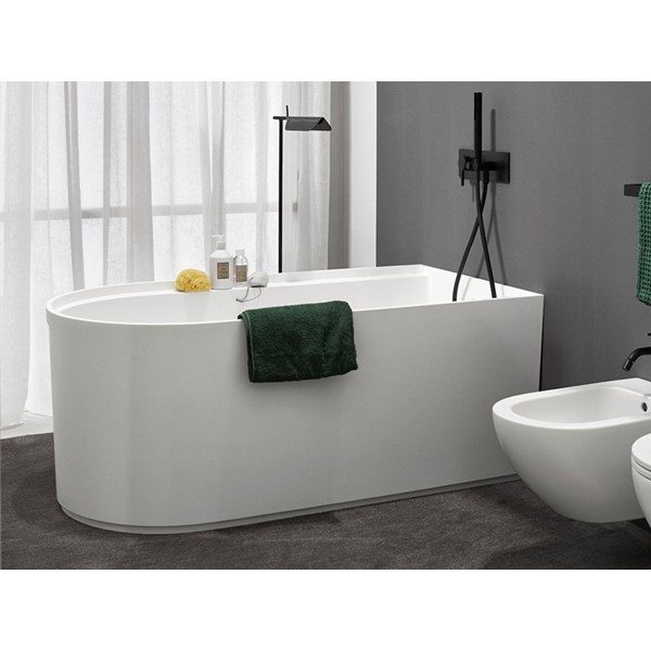 Febe – with an essential and measured design it can be positioned both in the middle of the room and along the wall, becoming a comfortable shower. Asymmetrical edges and a practical shelf on one side, for storing soaps and perfumes, Febe is a tub with compact dimensions based on maximum comfort.