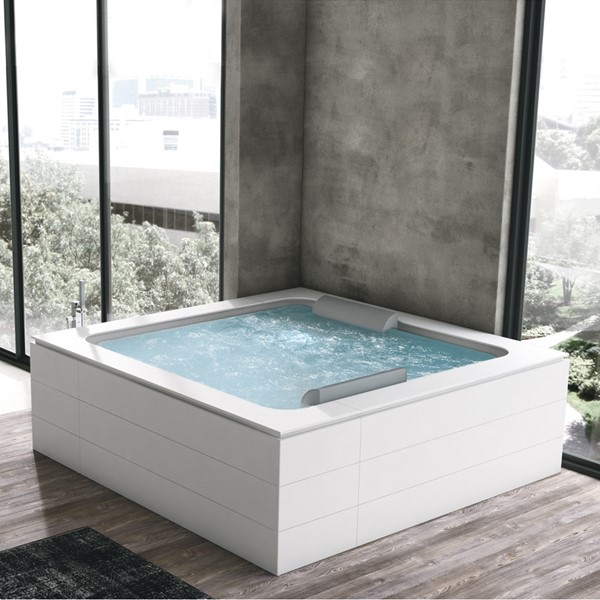 Bolla Q is available with Airpool, with or without automatic recirculating water system, Whirpool and Whirpool Airpool systems. It’s equipped with heater and water disinfection system.