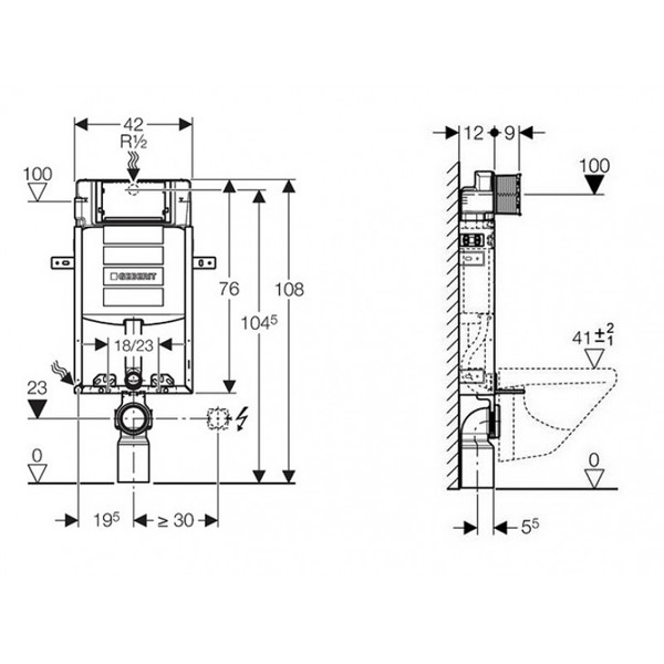 - For wall-hung WCs with connection dimensions in accordance with EN 33:2011