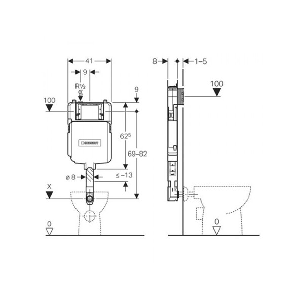 Geberit Sigma concealed cistern 8 cm, 6 / 3 litres