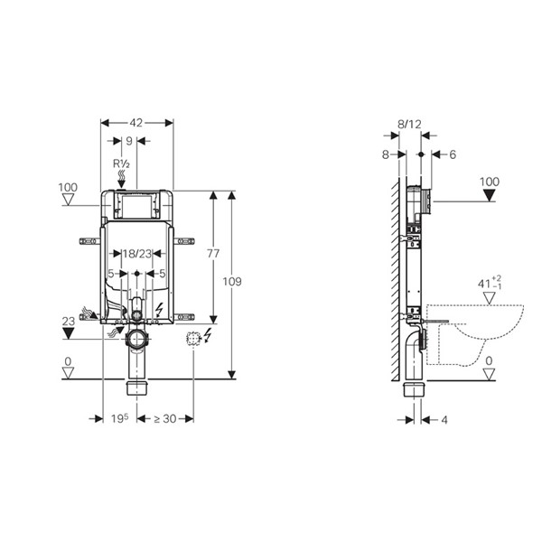 Geberit Kombifix element for wall-hung WC, 109 cm, with Sigma concealed cistern 8 cm