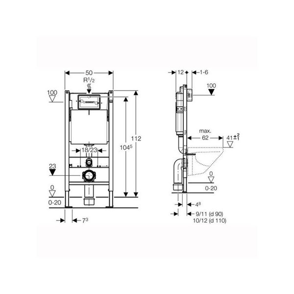 Εlement for wall-hung WC, 112 cm, with Delta concealed cistern 12 cm