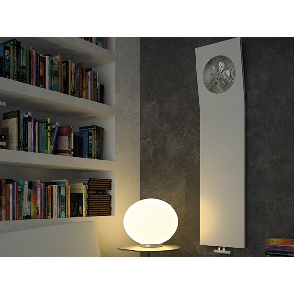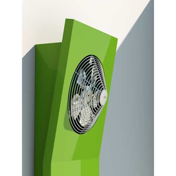 Aria is the avant-garde design radiator that combines industrial aesthetics and domestic soul in an exclusive-looking heated towel rack. Essential design, consisting of a steel cover that encloses in an harmonic profile an axial fan that hides a high efficiency heat exchanger. For the first time, heated towel rail is designed for winter use as well as for the summer season. The fan hitherto hidden in all the heating bodies becomes the characteristic aesthetic element that transforms the classic heated towel rail into a piece of furniture.