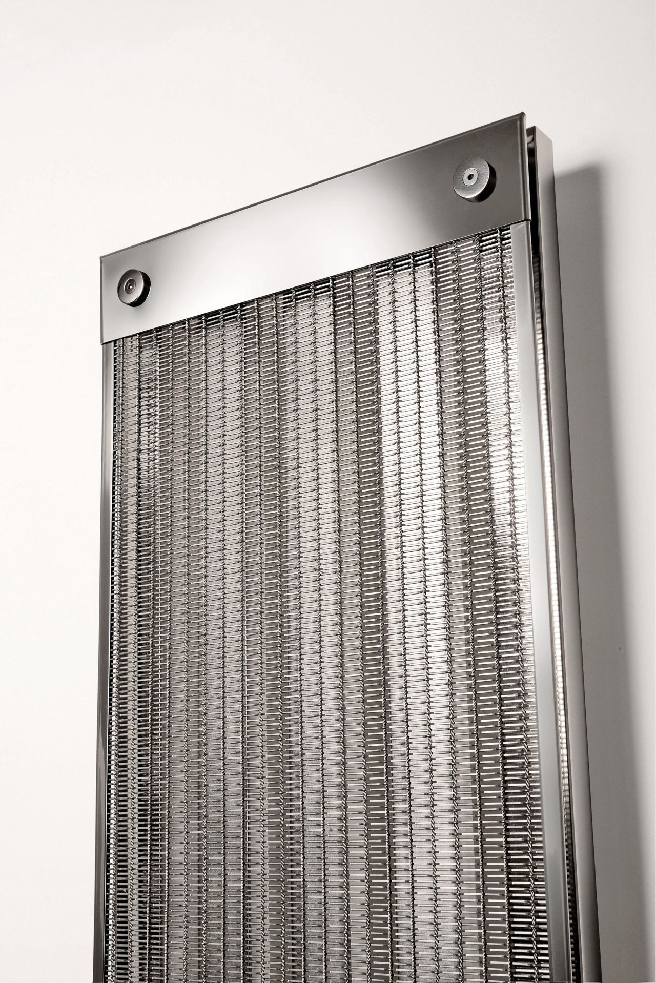 Mix of material between the heating structure in high strength steel and cover plates in glass, mirror, steel sheet and flexible wire mesh in a perfect balance between aesthetics, functionality, care and attention to detail. Radiator with dry and defined lines, New Dress is a heating body with a “chameleonic” design, protagonist and eccentric, suitable for any room.