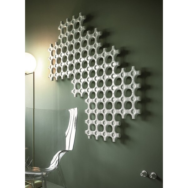 Add-on, recyclable aluminum radiator, with a 12 x 24cms element at its cent re is based on the principle of modularity that offers a wide range of composition possibilities, creating different solutions that can be free or defined, square or rectangular.