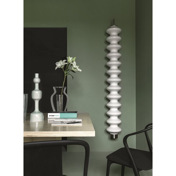 It is also available in the ceiling version, made possible by a particular fitting and by a type of absolutely innovative connection. It is made of painted steel 13x26cm (HxL) modular elements, and is available in water and electric versions.