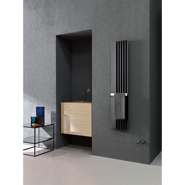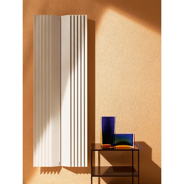 Modularity makes Step-by-Step suitable for the most diverse design requirements. The basic module can be installed individually or placed beside another module, thereby creating four configurations: one or two modules tilting towards the right, one or two modules tilting towards the left. Step-by-Step is available in the hydraulic, electric and mixed versions. The radiator heats up in two different ways: via radiation, in other words by radiating heat directly through the large heat-exchange surface, and through natural convection, thanks to the hot air that goes from the bottom upwards.Step-by-Step can be accessorized with towel rails, making it suitable also for use in the bathroom.