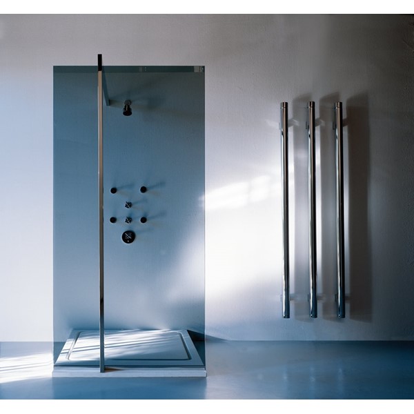 A simple large tube – coated in chrome-plated brass or painted finish– with a special circuit on the inside that allows circulation of hot water, or insertion of a special electric resistor. Available in water, electric or mixed versions, t.b.t. can be installed individually or in groups of two or three, either vertically or horizontally. A floor connection version equipped with support base enables different installation modes other than the traditional wall fixing.