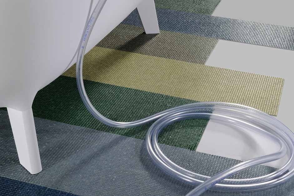 three color palettes: grey, brown and blue, and their mixes, the chips united together into sheets can cover planar and curved spaces, without any interruption, giving the sense of continuous surface.