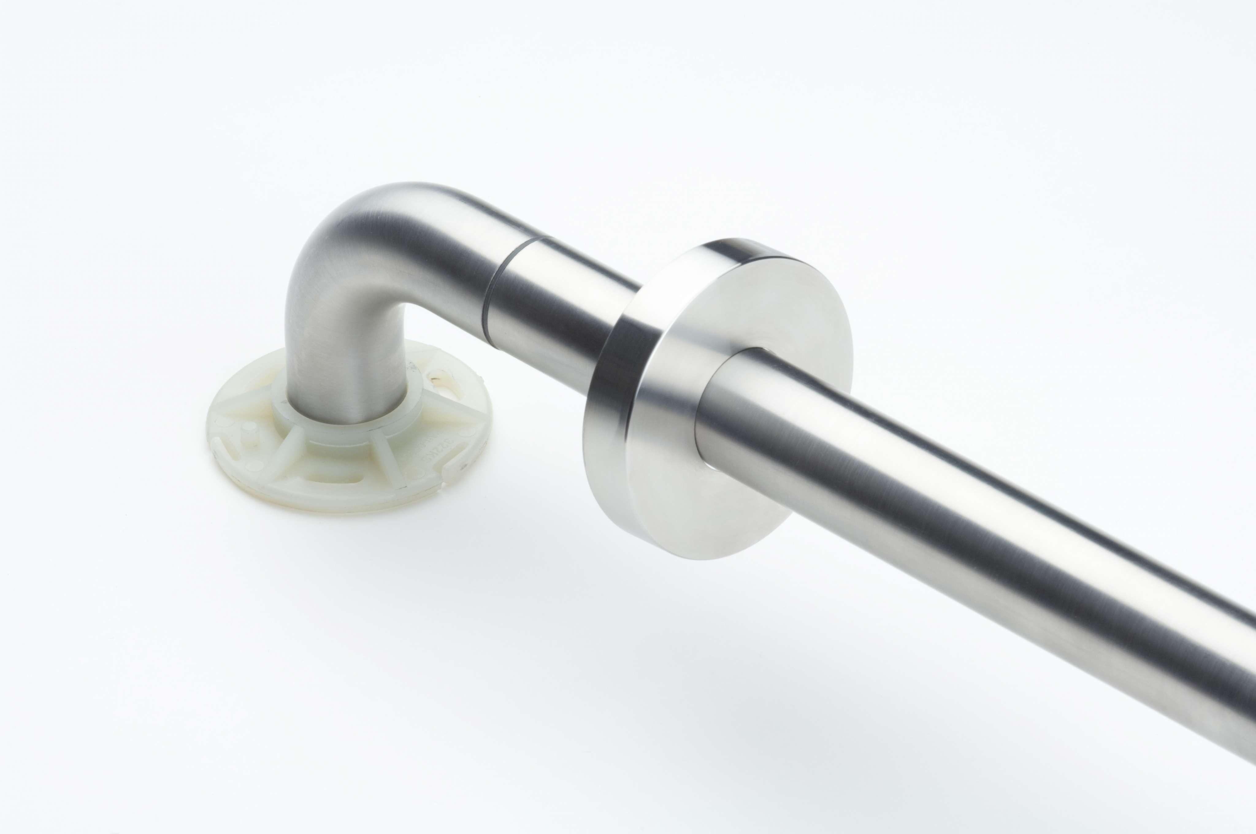 An extensive model range, ergonomic inward rounded grip surfaces and high quality materials, combining aluminum with elegant zinc die cast parts all beautifully finished in chrome. The handle system, also available as holding handle with shower holder offers clients sustainable, barrier free bathroom design for both public and private sanitary areas. The handle system is complemented by perfectly shaped folding handles, optionally providing soft support for a comfortable and secure grip. The unique and innovative “Easy Clik” wall mounting system allows speedy removal of folding handles when not in use.