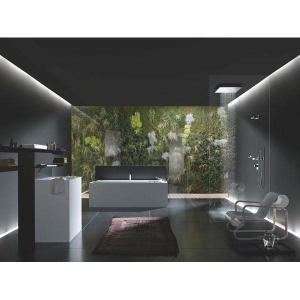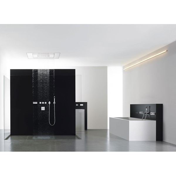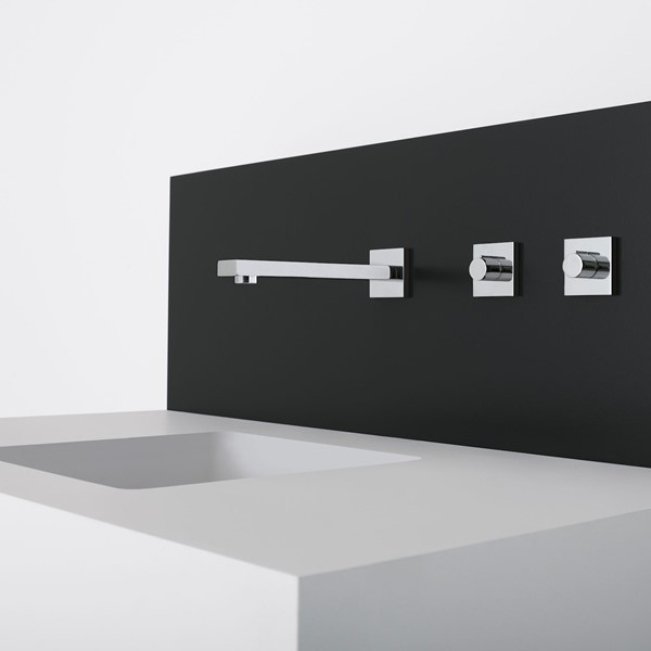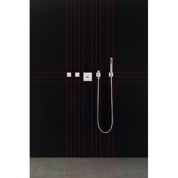 The modular Symetrics system opens up new perspectives in interior design for architects and planners. Symetrics comprises numerous individual modules for the entire bathroom area, which are tailored to a defined grid size. The modules can be arranged and combined freely within this grid. Because the spouts and controls are clearly separate, the overall appearance of the bathroom is redefined by the arrangement of the modules.
