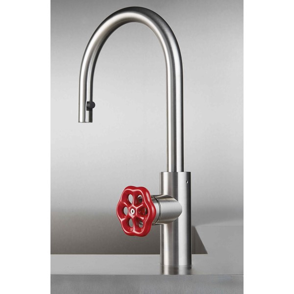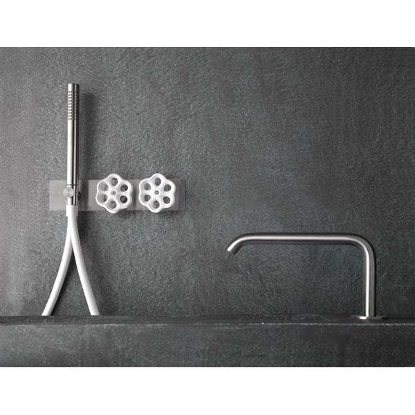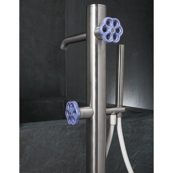 AISI316L Stainless steel mixer range with hand made porcelain handles.