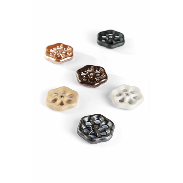 Each handle is a one of a kind masterpiece. Available Brushed and Polished finishes for the stainless steel parts and many colours for the hand made porcelain handles.