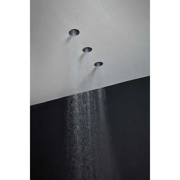 Without a visible frame, the overhead shower appears as a simple hole in the false ceiling and refers explicitly to the image of other elements, proposing a radical change in meaning and function.
