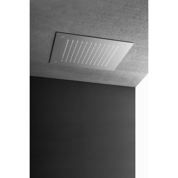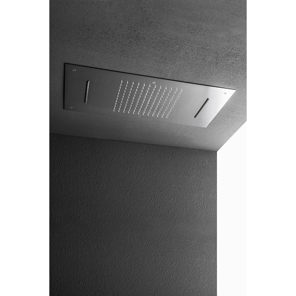 The shower heads – in satined or polished stainless steel and in Corian® GW, are available in the version only shower or with integrated color therapy and single or double waterfall blade. They can be used singularly or combined with the OX taps, the showers and the steambaths of the collection.