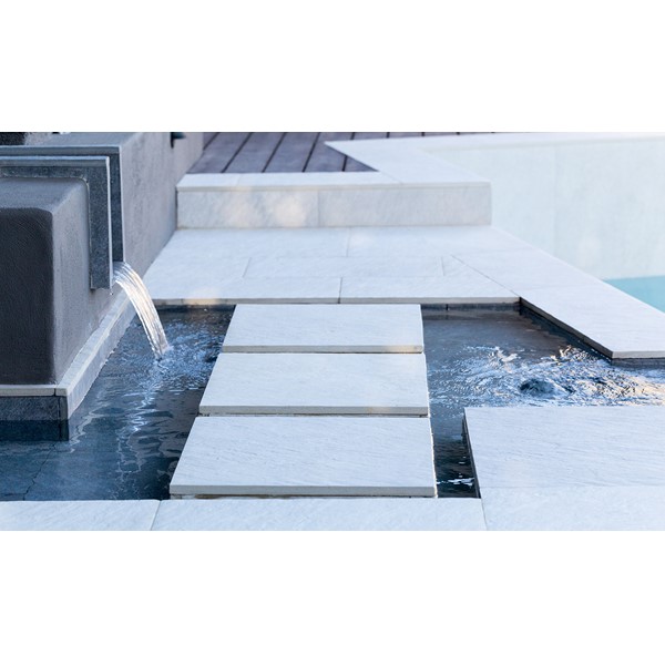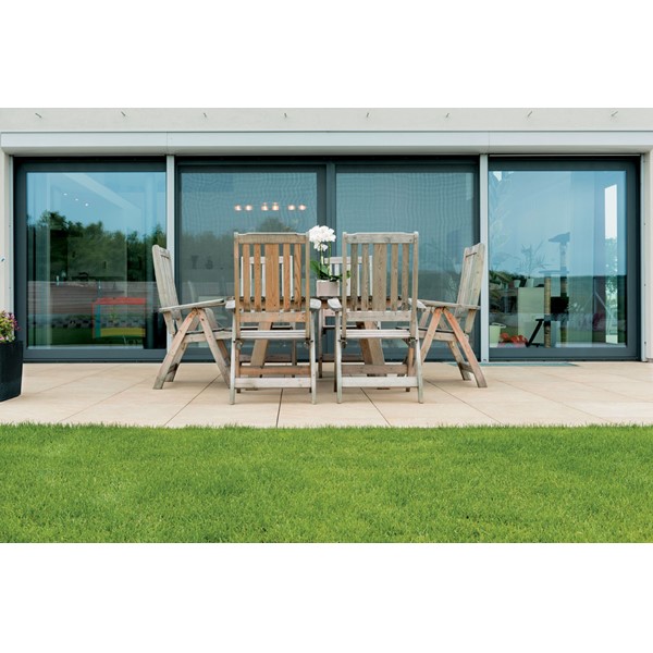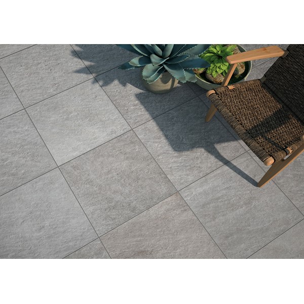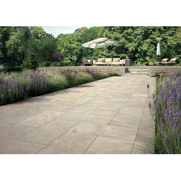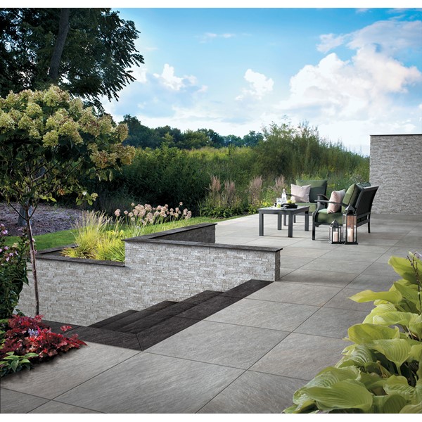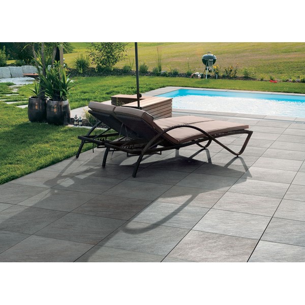 The two natural surfaces used - R10 and R12 - also allow you to perfectly coordinate indoor and outdoor areas.