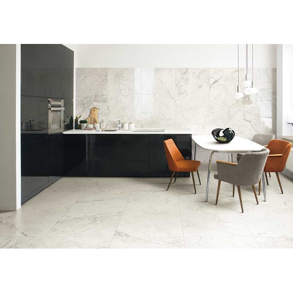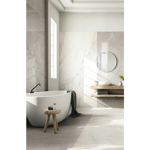Exalt is part of the new Cerim collection, inspired by marble. In conjunction with the Antique Marble and Timeless series, it offers a wide range of colors and aesthetics perfectly suited to diverse living styles. The series offers six types of marble effect with veining and delicate graphics for a versatile and modern look, particularly suited to residential applications. There are two available thicknesses – 10 mm and 6 mm - with glossy and natural finishes. The large Magnum Oversize (120x120 cm and 120x240 cm with a thickness of 10,5 mm – a novelty for Cerim) are suitable for creating unprecedented and spectacular volumes.
