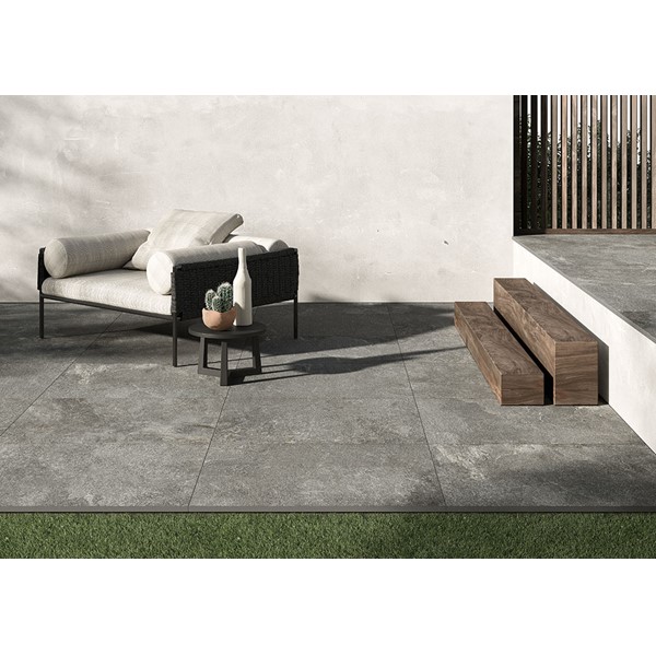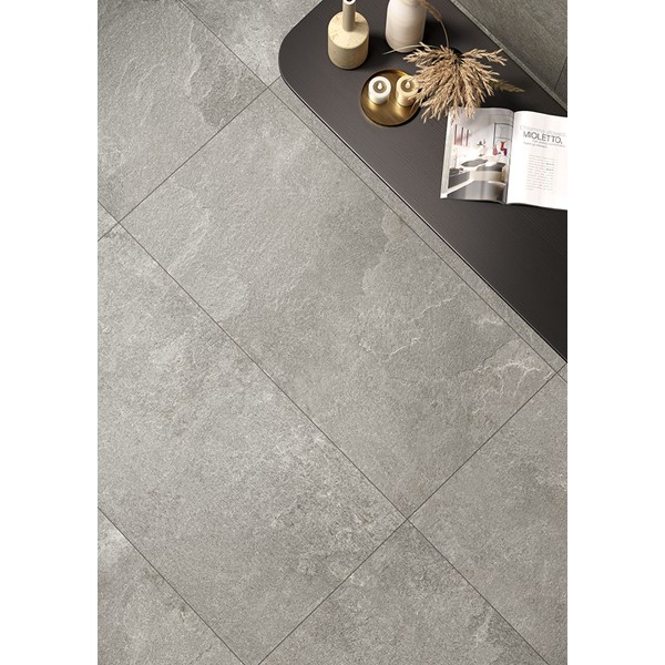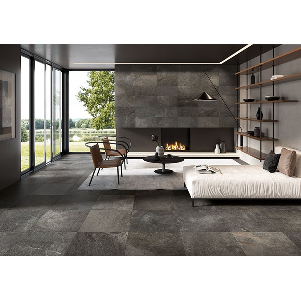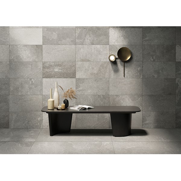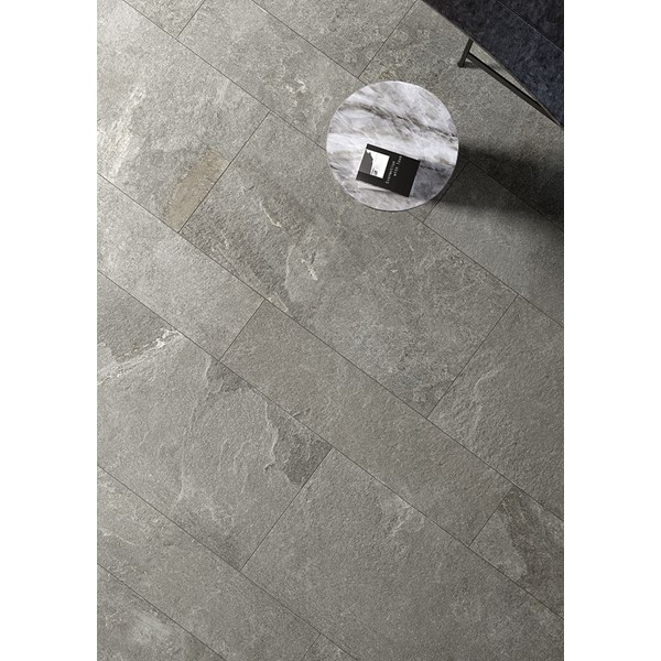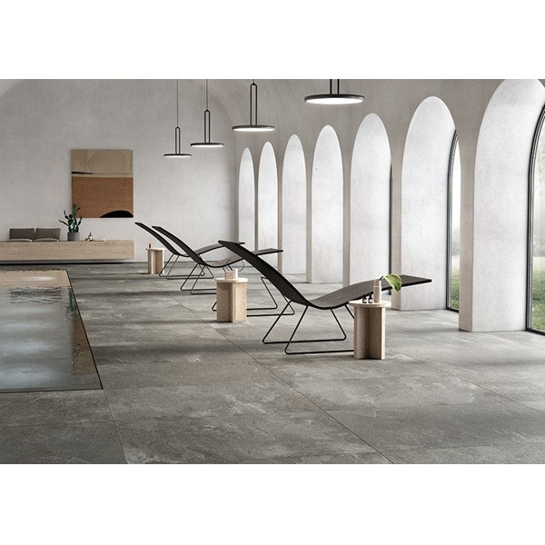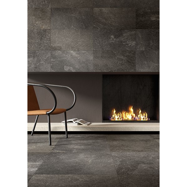The collection takes its inspiration from Kavala Stone, a slate of Greek origin, traditionally used for outdoor flooring of all kinds, as well as roofing elements, thanks to its excellent resistance to wear and tear and external agents. Coem interprets the distinctive colour and material effects of the stone, respecting its natural shades with two finishes, for indoors and outdoors, able to maintain its distinctive technical features unaltered for porcelain stoneware floors of impressive power and beauty