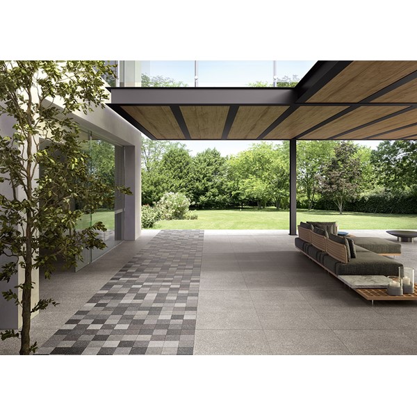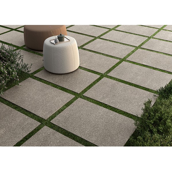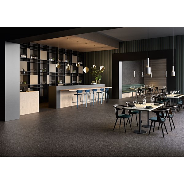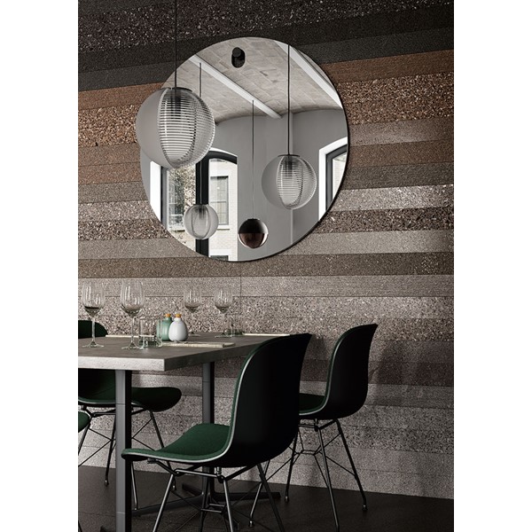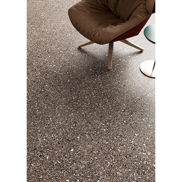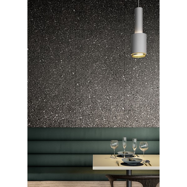 This particular characteristic is featured in 2 patterns: a fine-grain version inspired by the original stone and a coarser-grain agglomerate.