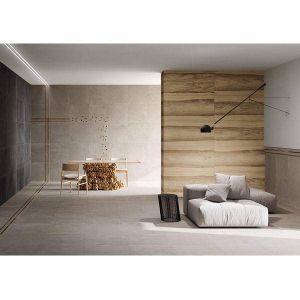 From an idea derived from the collaboration with “Neropaco”, the poetry of wood meets the strong character of concrete in an elegant, sophisticated ceramic combination.