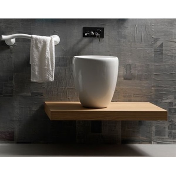 Formal research and study of materials that interact creating design solutions showing an interest in fine things. Based upon the concept of the New Ergo collection, the intention of creating a coherent style with the aim of rediscovering good sense of what is simple and natural. Solid and uninterrupted lines of sanitary ware, round shapes and corners, thin true lines of thickness of washbasins that evoke some kind of magically charm and harmony, where the formal purity of the ceramic white is brightened by the warm tones of wood.