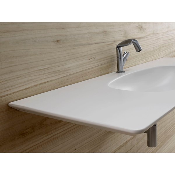 Careful dimensioning of the proportions, where sensual lines intermingle with rigid geometries, has given life to the NudaFlat console. In this project, material and design interact seamlessly to create a washbasin that is lightweight, essential and at the same time highly sophisticated.