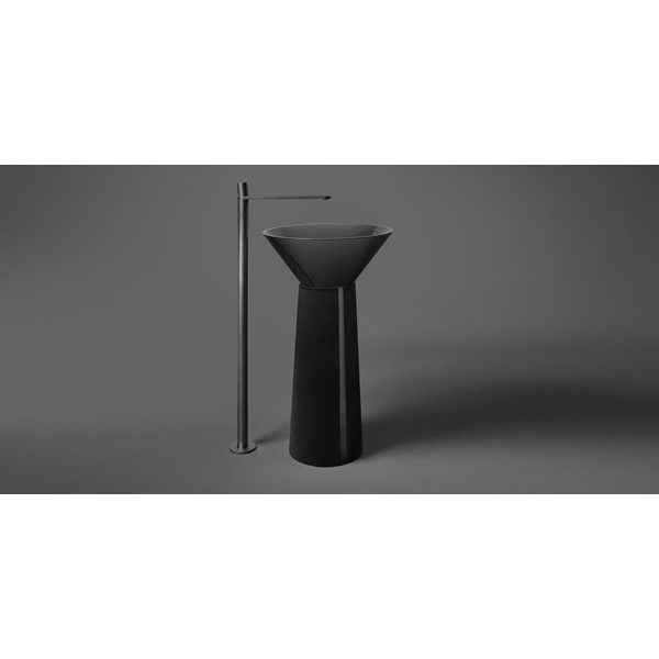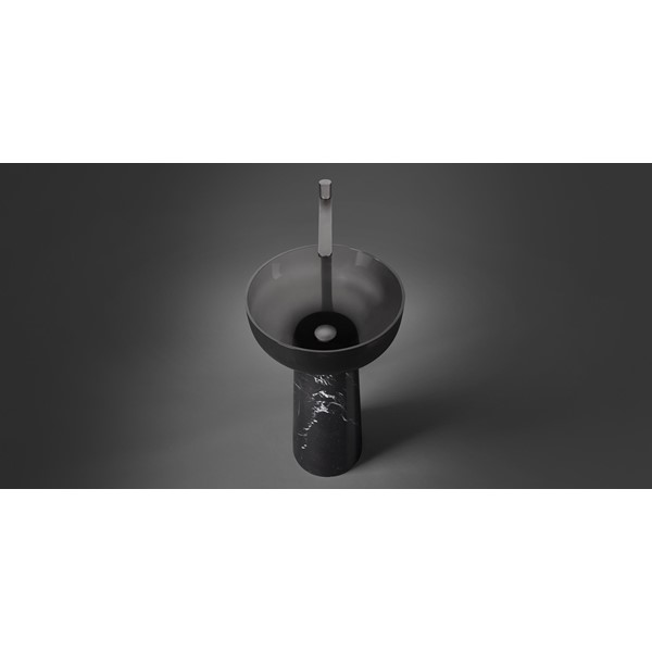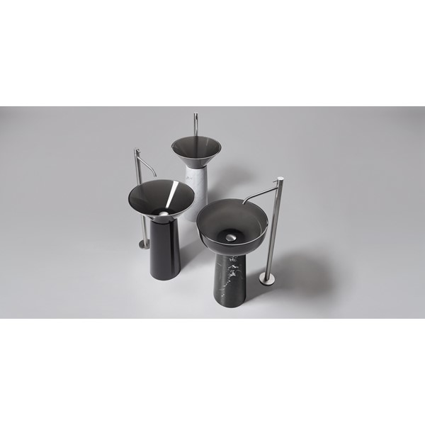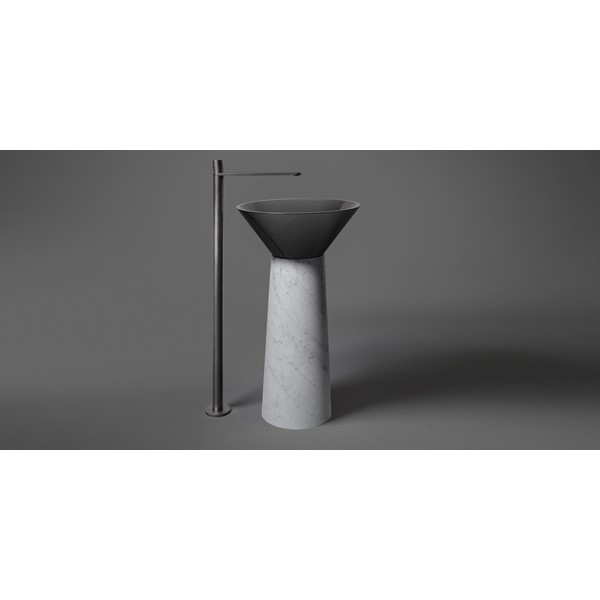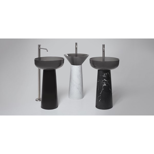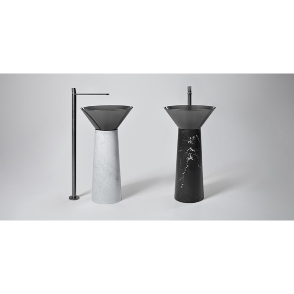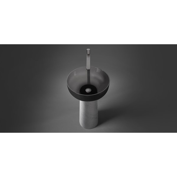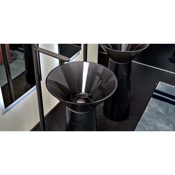 Lightness and solidity, rigor and expressiveness, material and color. Poetry of opposites, the balance that arises from the superposition of geometric shapes, a perfect and proportional relationship between the parts. Albume is the freestanding washbasin designed by Carlo Colombo that alternates between a solid base that expresses strength and a transparent and colored basin that leaves the role of protagonist to the water.