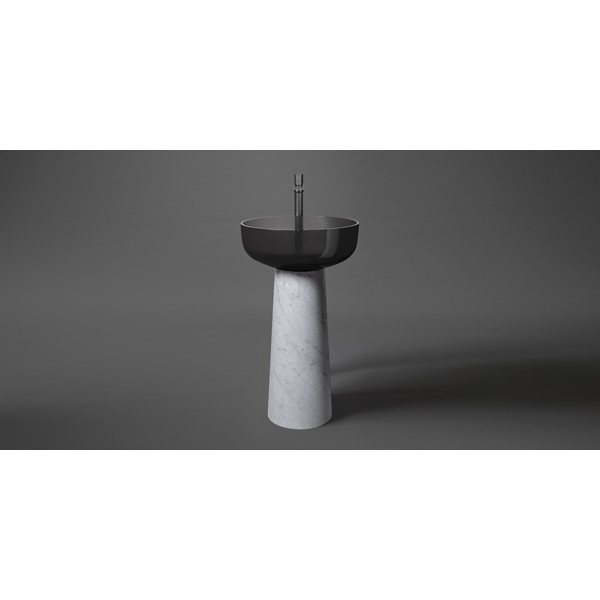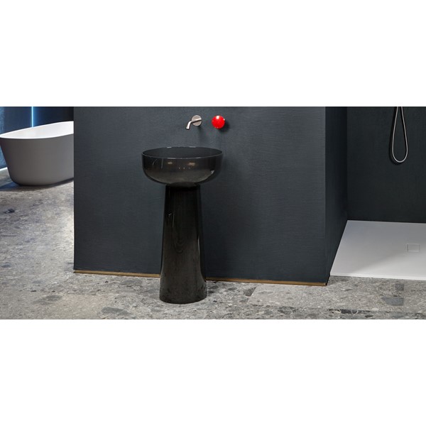 Precisely in this sense, Albume fits perfectly into refined bathrooms, in which its materials harmonize with the surfaces and other elements of the composition of the space. The base besides being made in resin, can also be made in Bianco Carrara or Nero Marquinia marble to give more elegance and prestige to a project and to dialogue with walls, floors or work surfaces.