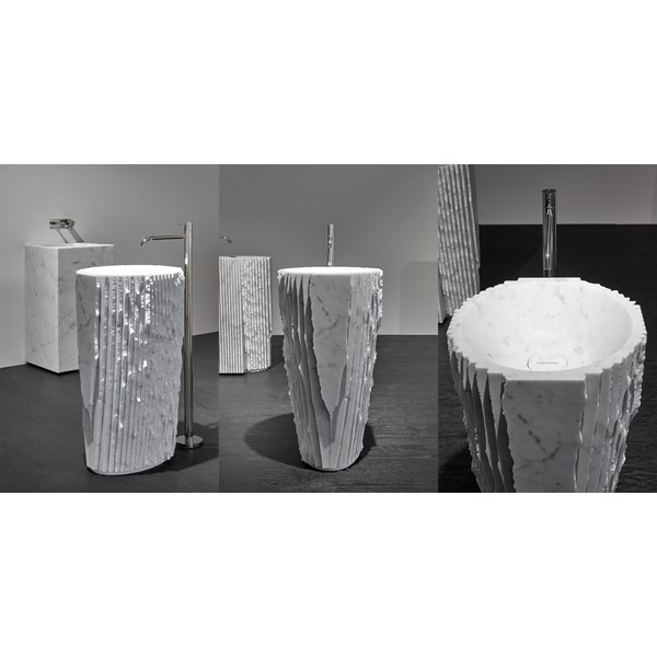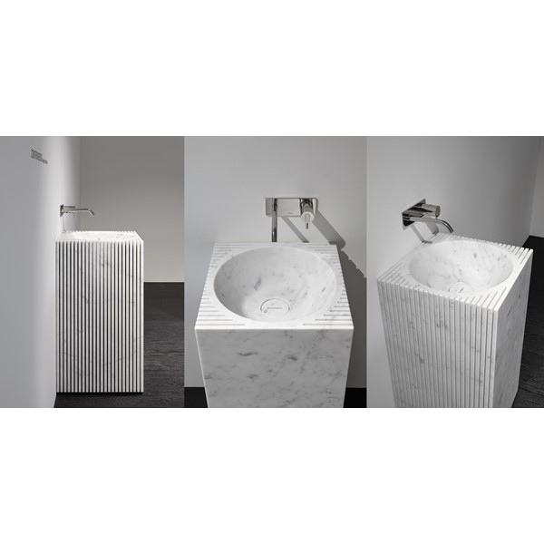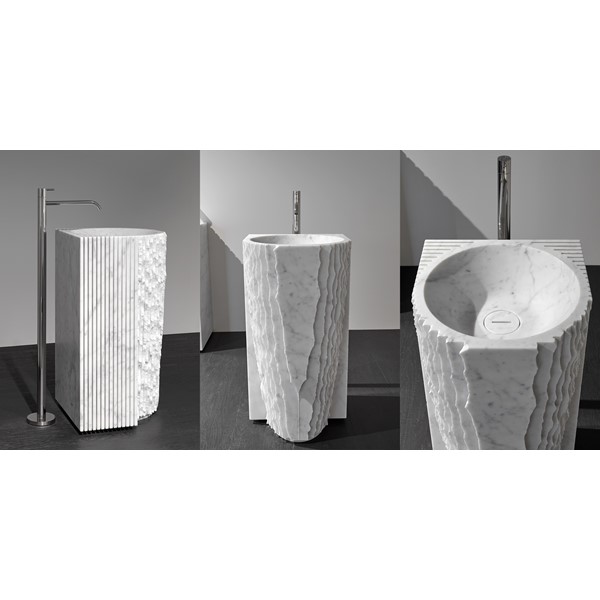 Antoniolupi looks to surprise its audience through a new challenge with white Carrara marble, a core material, ancient and multifaceted, interpreted in accordance with the designer Paolo Ulian. Ulian was able to shape the material and reinvent it to create new highly innovative and contemporary objects. After the Introverso basin, Paolo Ulian interprets the marble in a more sophisticated way. Technology meets nature, evolution keeps memory alive, the project allows you to tell a story. The form is generated by subtraction as in a sculpture, ancient and contemporary at the same time. Matter, the oldest, meets modern technology to perpetrate the water ritual. The drop that draws on the surface concentric shapes now "digging" the matter irregularly but perfect at the same time. Perfect cuts, mechanical milling, the ability to extract from matter its essence through the comparison of perfect surfaces and linear geometries. Controverso springs from a thought, from action and transforms the product into an experience. A marble block is crossed by the milling machine and then interpreted by man to create different shapes. A proposal that comes from respect for nature shared by Paolo Ulian and Antoniolupi, a path with marble in different collections that fit into a path traced by masters that have always interpreted this noble material. Controverso is a marble monolith of geometrical shape, squared, which is processed to detonate all its inherent strength. A strong and delicate gesture at the same time, an interpretation of the creative act that meets production, a sink that fits into contemporary environments but also in different contexts.