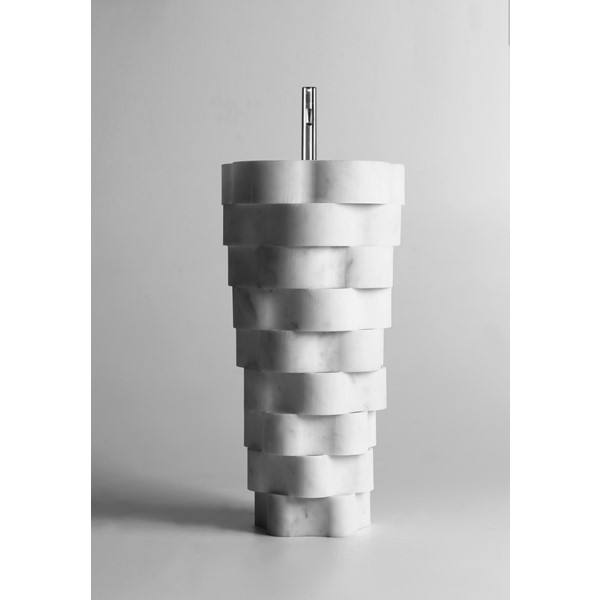 The work of man meets nature to give life to Intreccio, the freestanding washbasin entirely made of marble, which plays on the relationship between lightness and solidity of the material used, on the balance between a sophisticated piece and an apparently natural form. Intreccio represents the natural evolution of the path undertaken more than a year ago by Antoniolupi and Paolo Ulian, to investigate the relationship between an ancient material and new processing techniques. Iconic like the previous washbasins of the collection, dynamic, for the particular geometry of the concentric layers that are staggered when they are overlapped proceeding upwards, so as to determine a play of light and dark and full and empty obtained only by the variation of light on concave or convex shapes. In fact, Intreccio is born from a block of marble on which the cuts have been optimized to obtain all the parts necessary to create a three-dimensional volume. The numerical control machining technologies have allowed to obtain curvilinear and thin shapes, light, almost as if they were of another material and not of marble. With Intreccio, the research of Antoniolupi further investigates a topic that is of saving resources and materials. A single block of marble is divided into 4 from which 4 washbasins are made. The rings that make up Intreccio are concentric because they have to be obtained one inside the other from the block of marble drastically reducing the waste produced by the cut. Without forgetting lightness because weight has always been a significant factor in the production of marble products. Intreccio weighs "only" 55 kg. Lightness, technology that becomes an aesthetic expression and material savings summarize at best a project of great impact, an element which gives life to a composition of the elegant and contemporary bathroom.