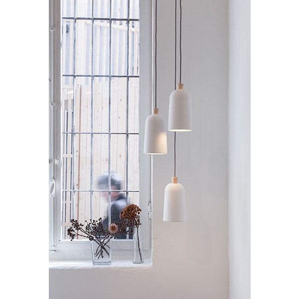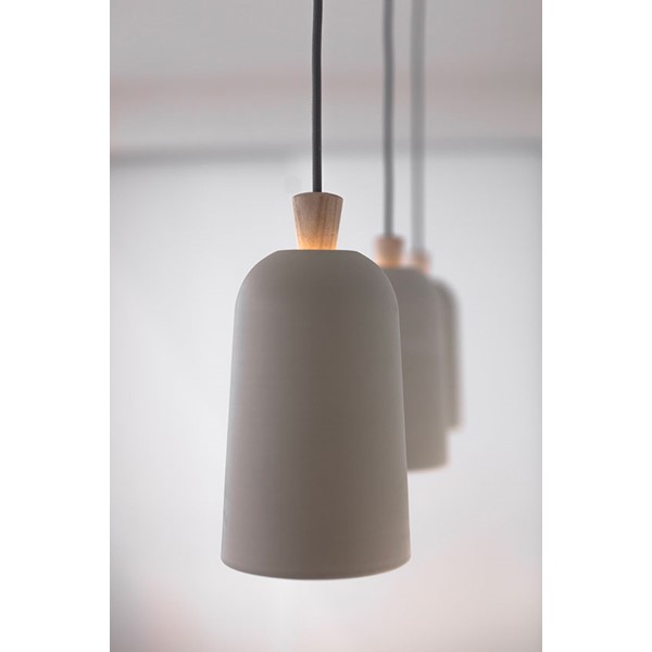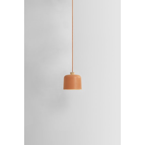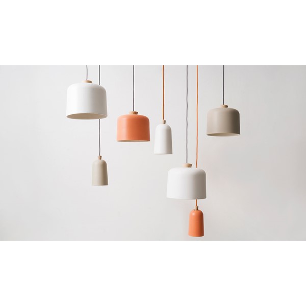 Fuse lamps combine Italian craftsmanship with the essence of Nordic aesthetics, in a perfect blend of materials and style. The sense of touch and the visual impact play a fundamental role in Fuse lamps design: the soft porcelain creates a stylistic continuum with the small wooden hat that lights up when the lamp is on, giving warmness to the whole room. Available in two sizes, in 4 different colors, with grey or orange silky fabric wire.