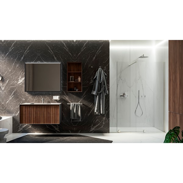 Mirror with painted aluminium frame. 4-mm glass thickness. With frontal light, integrated to the frame. Color temperature 4000k. Optional: Steam-free heated pad and USB port to charge your devices.
